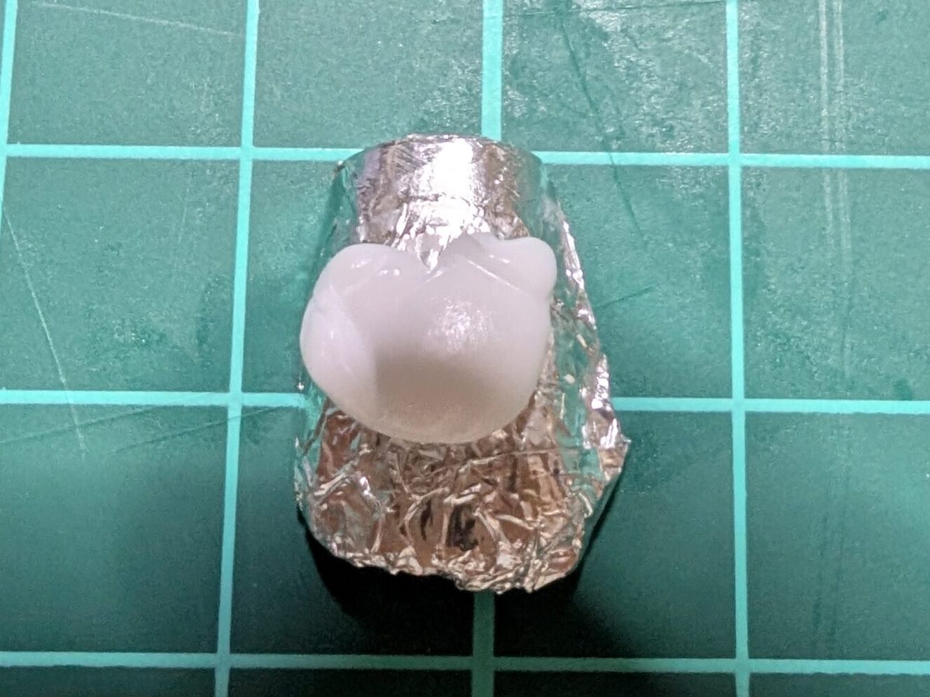 アルミホイルの上に粘土ジェルをおいて、細長くなるよう転がします