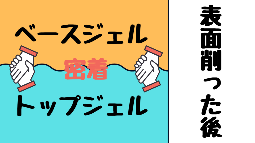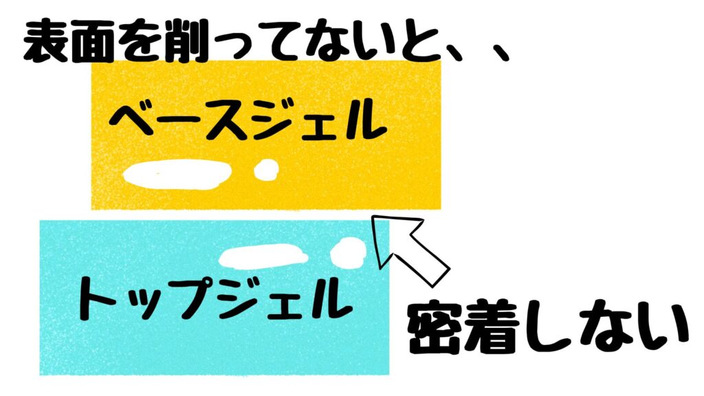 トップジェルだとはがれやすくなる理由は、表面に密着力がなく、ツルツルしているからです!