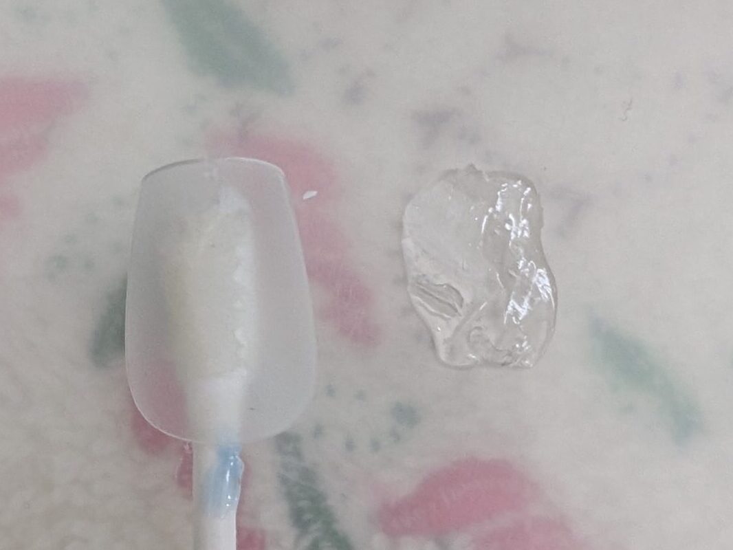 硬化したら、ひっくり返して爪に貼り付けます