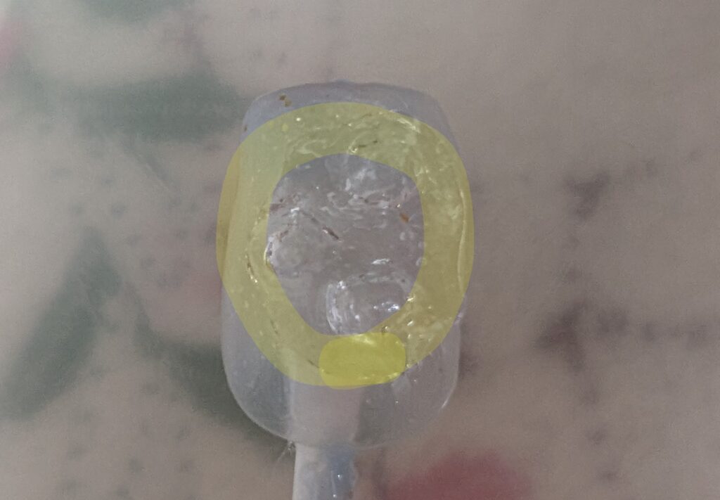 バブルの土台と、爪の段差をなくすために、ベースジェルでなじませます