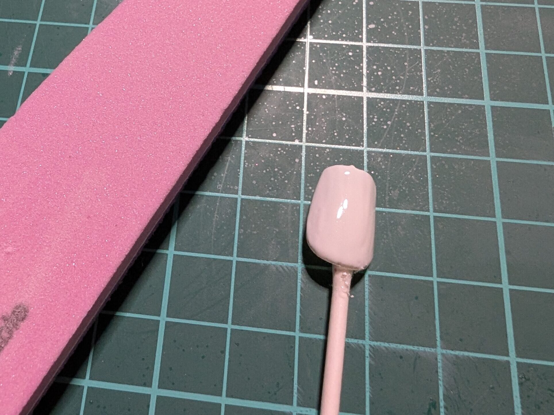 つやがなくなるよう、表面を爪やすりで削ります