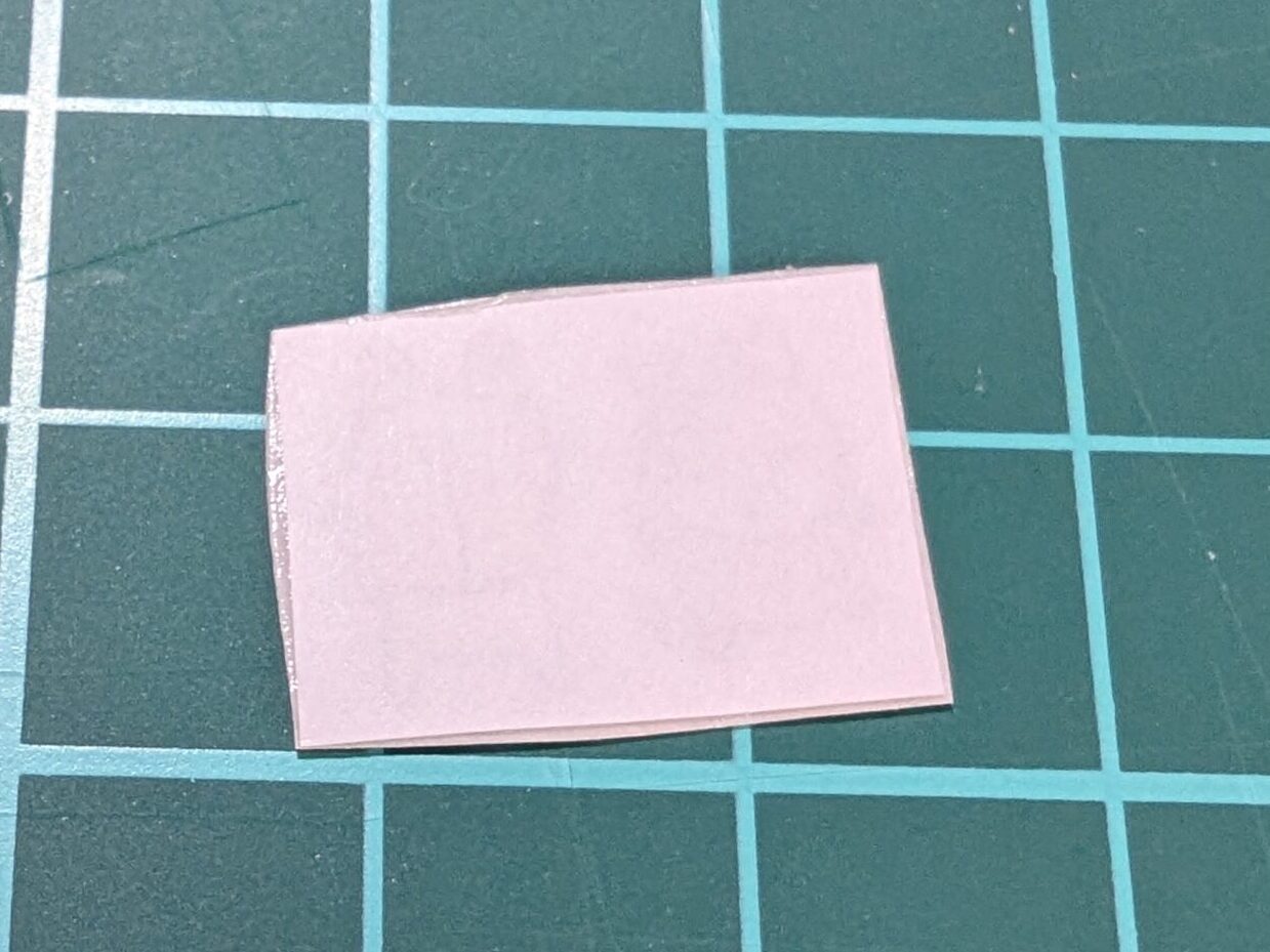 はみ出た両面テープを、紙と同じ大きさになるように切り取ります