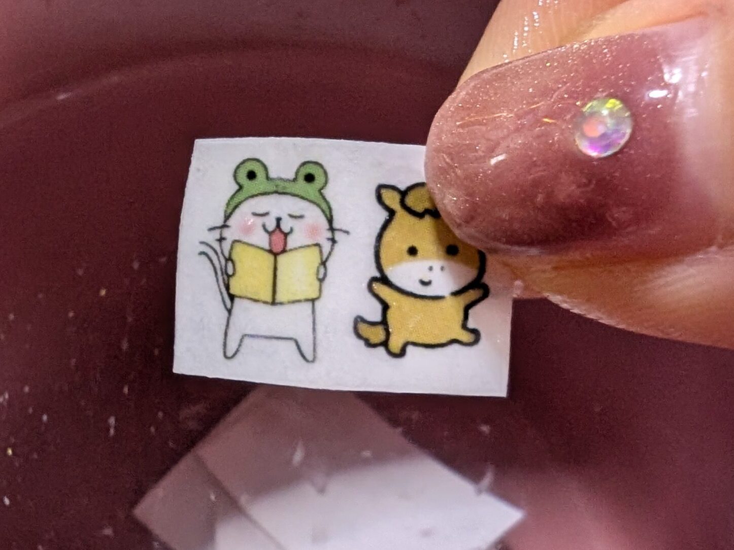 爪にのせるときは、内向きにシールを貼ると、相手にオタバレ(オタクとバレること)しにくいので試してみてください♪