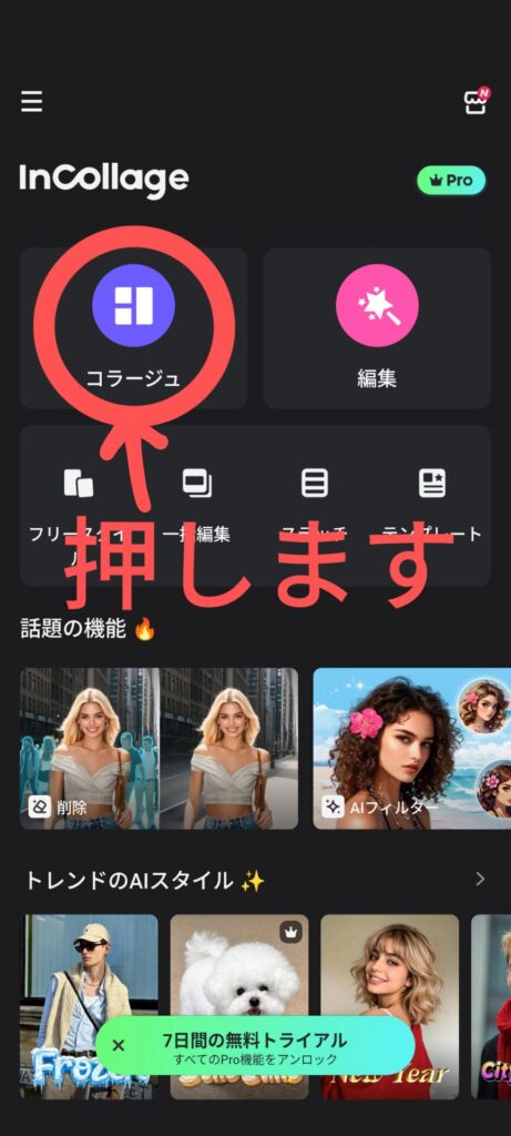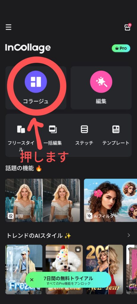 1.コラージュを押します