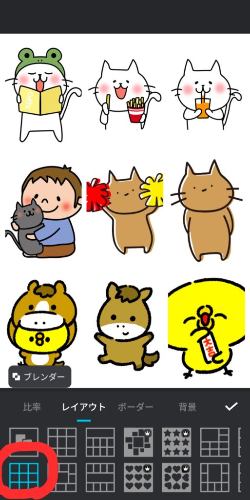 2.コラージュ➡さっき作った画像を4回押します