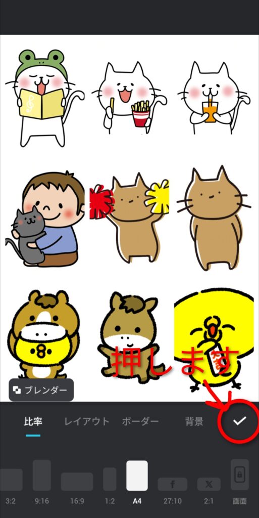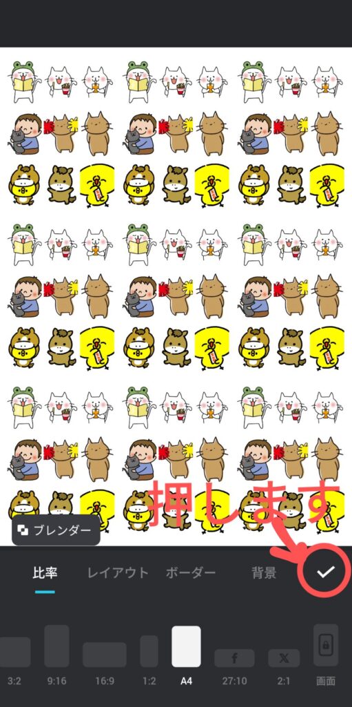 5.比率は「A4」にして「✔」を押します