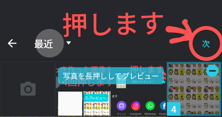3.さっき作った画像を9回押して「次」へ
