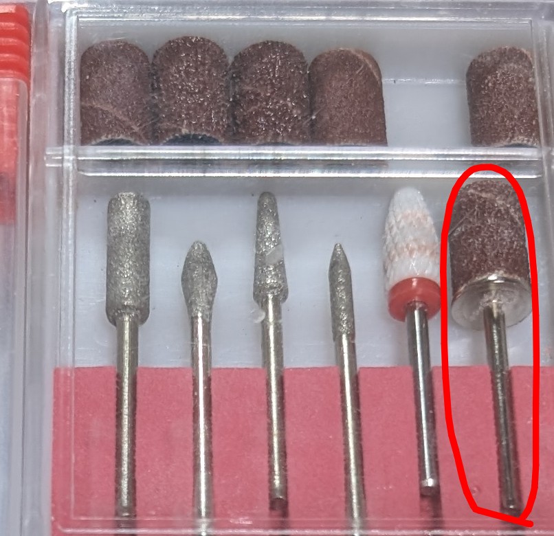 マシンを使う場合は、こちらの茶色い先端で削ると早くきれいに削れますよ✨️