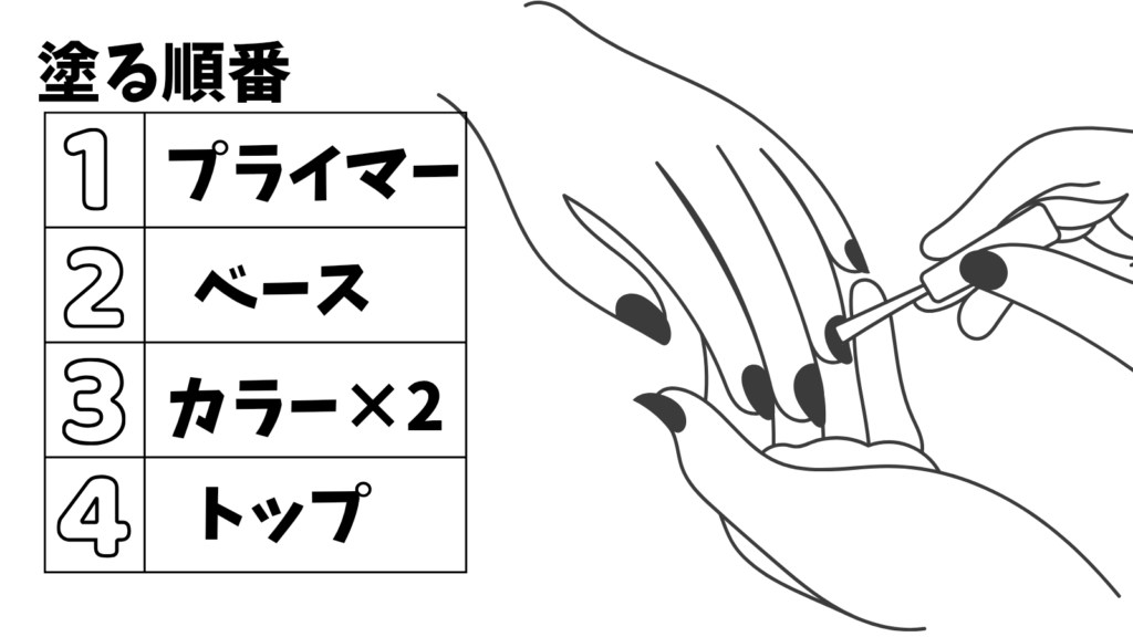 横がはみ出しやすい方は、液を少なめに取って、ゆっくり塗るとはみ出にくいですよ!