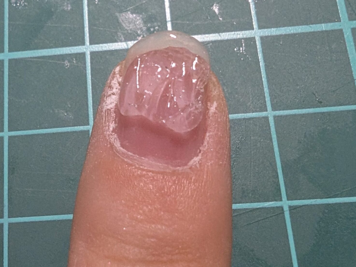 ・自爪の表面を軽く削る